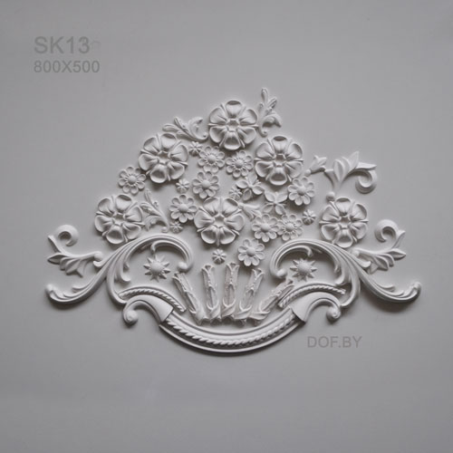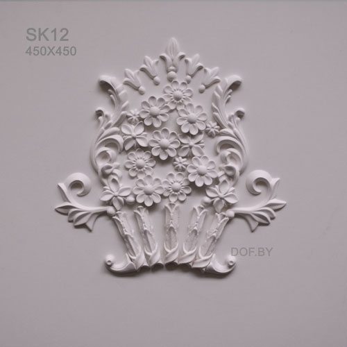 - Декоративные гипсовые элементы, барельефы, растительного и геометрического узора орнамента применяется для декорировании стен, потолков, мебели, каминных порталов и облицовок, настенных зеркал, дверных и оконных проёмов и т.д.