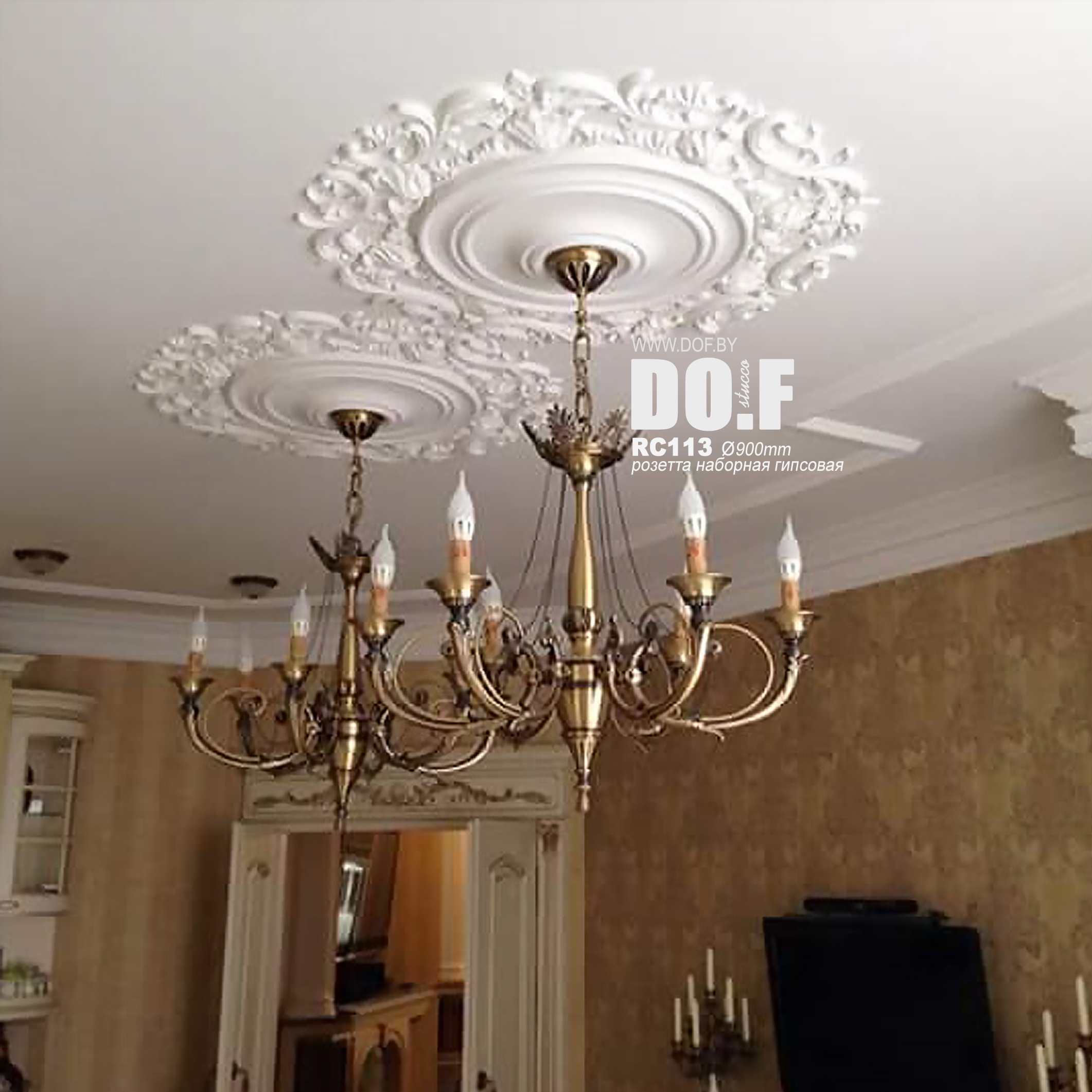 2. в соответствии с разметкой установить розетту на клей.